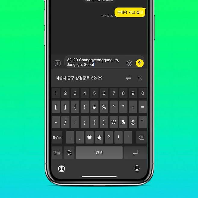 사실 요즘 내가 스마트보드의 번역 기능을 가장 자주 쓸 때는 다름 아닌 영문 주소를 칠 때다. 사실 이전에도 네이버 영문 주소 검색 기능을 즐겨 사용하곤 했었는데, 지금은 그냥 키보드에서 번역 아이콘을 누르고 사용한다. 한글로 주소를 치면 알아서 영문 주소로 바꿔주는데 순서까지도 알아서 영어식으로 바꿔주기 때문에 그냥 복사해서 넣으면 끝!