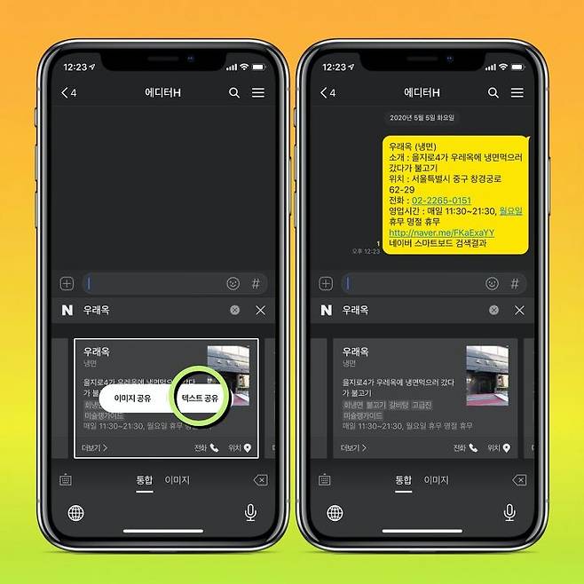 특히 맛집 같은 경우는 위치와 전화번호 영업시간, 네이버 지도까지 모든 정보를 굉장히 일목요연하게 볼 수 있다. 역시 가장 유용할 때는 단체 모임에서 저녁 약속을 잡을 때다.