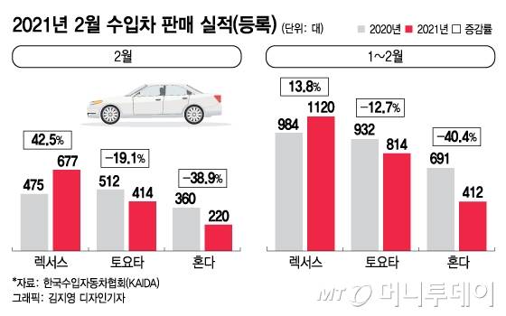 올해 2월 렉서스를 제외하고는 토요타, 혼다 자동차 판매가 더 줄었다.