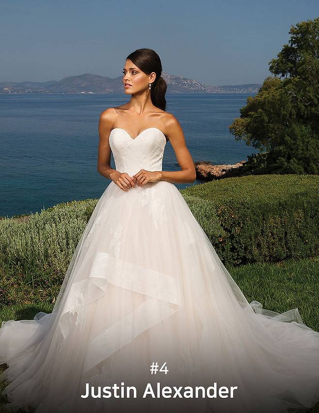 4번은 단아하면서도 깔끔한 Justin Alexander의 드레스에요! 어느정도의 노출은 하고싶으면서도 단아한 드레스를 원하신다면 이런 스타일을 고려해보시는 게 좋을 것 같네요*.*~/