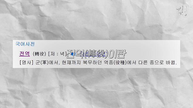 ‘군에서 현재까지 복무하던 역종(役種)에서 다른 종으로 바뀐다’는 뜻