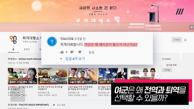 유튜브 댓글로 “왜 여군은 전역과 퇴역을 선택할 수 있는지 알아봐 달라”는 의뢰가 들어와 취재해봤다.