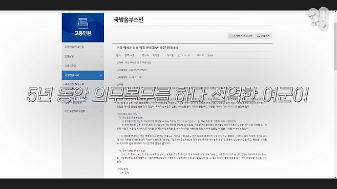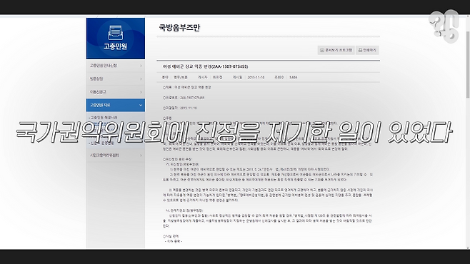 당시 해당 여군은 전역과 퇴역의 차이에 대한 설명을 듣지 못한 채 전역을 선택해 예비군 복무를 하게 됐다며, 남성들과 함께 예비군 동원 훈련을 받아 정신적 육체적(산부인과 질환)으로 곤란한 점이 많다고 주장했다.