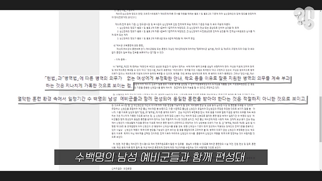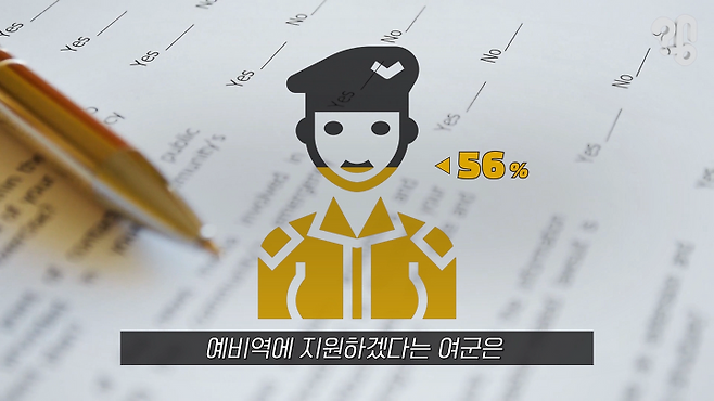 여군들도 본인들이 스스로 선택을 해서 간부, 부사관 장교가 된 거잖아요. 사회에 나가서 본인들은 그런 경력이나 이런 것들을 사회적으로 활용하는데 좋은 것은 취하면서 다른 간부 전역자들이 마땅히 해야되는 의무, 예비군으로서의 그런 것들을 가혹하다고 하는 것은 어폐가 있죠.