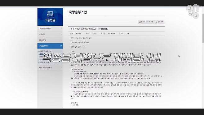 당시 해당 여군은 전역과 퇴역의 차이에 대한 설명을 듣지 못한 채 전역을 선택해 예비군 복무를 하게 됐다며, 남성들과 함께 예비군 동원 훈련을 받아 정신적 육체적(산부인과 질환)으로 곤란한 점이 많다고 주장했다.