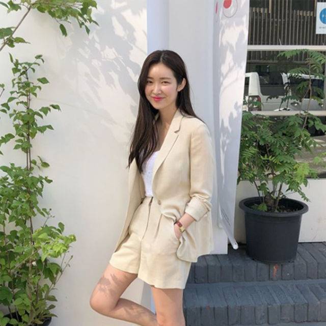 (아래) 뉴트럴 컬러 쇼츠 수트는 프론트로우