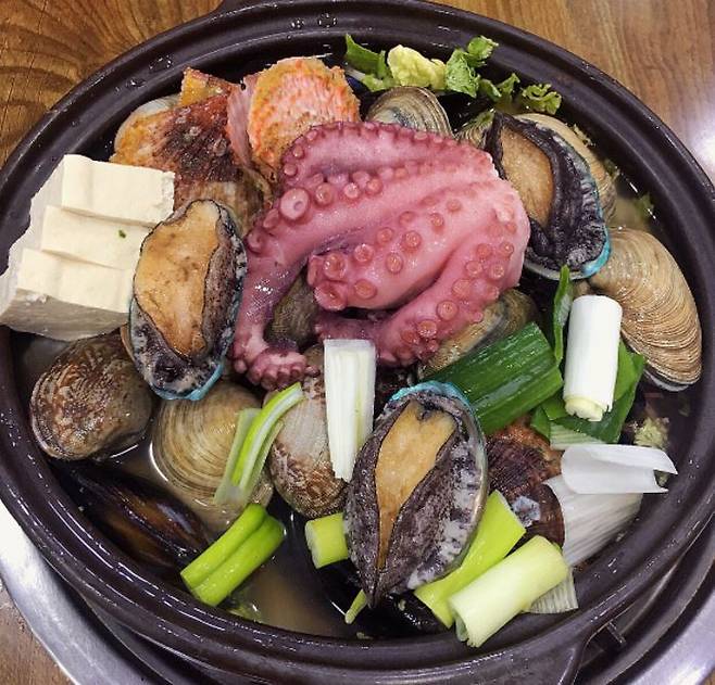 메뉴: 해물뚝배기 大(70,000원)ㅣ해물뚝배기 中(55,000원)ㅣ해물뚝배기 小(40,000원)ㅣ해물소갈비찜 大(62,000원)ㅣ해물소갈비찜 中(52,000원)ㅣ해물소갈비찜 小(40,000원)ㅣ멍게비빔밥(10,000원)ㅣ해물철판전골 中(50,000원)