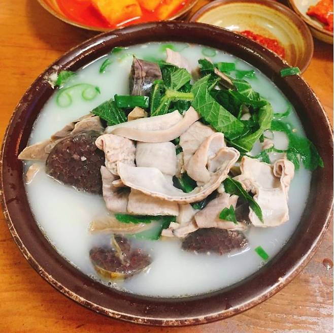 거제 현지인들이 자주 찾는 국밥집. 거제 고현동 고현시장 안에 위치한 곳으로 다소 찾기 어렵지만, 언제나 사람들이 많은 곳이다. 국밥은 내장이 듬뿍 들어간 내장국밥과 순대만 들어간 순대국밥 2가지. 국밥을 주문하면 소박한 밑반찬이 차려지고, 그릇 가득 넘치도록 건더기가 푸짐하게 제공된다. 국물반, 건더기반이라 할 정도로 푸짐한 건더기로 주인장의 인심을 느낄 수 있다. 파와 깻잎도 듬뿍 들어있어 비린 맛을 잡아주고, 뽀얀 육수는 구수하니 깊은 맛이 일품이다. 포장도 가능하며 용기나 냄비를 가져오면 천 원씩 할인해준다.
