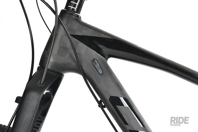 보통의 카본 프레임들과 달리 크로노 팀 27.5의 프레임은 카본결의 폭이 넓다. 이것이 텍스트림 카본을 사용했다는 증거다. 마치 레이스에서 사용하는 체크 플래그와 같은 텍스트림은 카본 원사를 평면으로 넓게 펴서 직조하고 압축해서 최소한의 레진만을 남기는 기술로 만들어진다. 텍스트림 소재를 사용하면 카본 층을 얇으면서도 밀도가 높게 만들 수 있다.