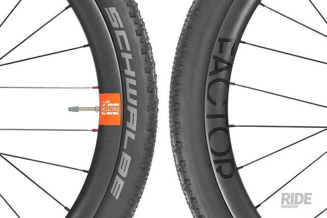 팩터 327의 허브는 앞뒤 모두 스루액슬 방식을 적용했다. 스루액슬은 단순히 휠을 결합하기 위한 규격 때문에 쓰는 것만은 아니다. 포크와 프레임의 구조물과 일체화해 전체적인 강성을 크게 높일 수 있기 때문에 최근 MTB뿐만 아니라 디스크브레이크를 사용하는 모든 자전거에 표준 기술로 자리 잡고 있다. 휠세트의 무게는 프론트 790g, 리어 950g이며 튜브리스 레디 림으로 빌딩 했다. 타이어는 슈발베 선더 버트가 장착되었다.