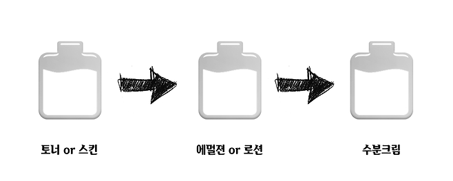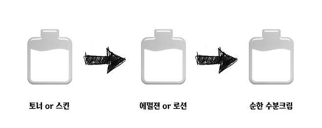 스킨케어 순서의 기본적인 개념은 수분을 가장 먼저 피부에 바른 후, 수분이 날라가지 않도록 유분으로 덮어씌워 뚜껑을 닫아주는 로직이다. 그렇다 보니 묽은 제형(수분기가 많음)을 먼저 바르고, 꾸덕 제형(유분기가 많음)을 나중에 바르는 이유가 생기게 된다.
