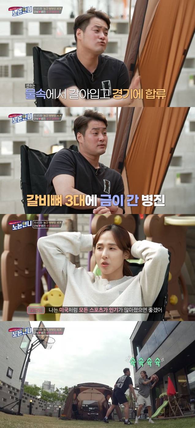 8일 방송된 E채널 예능프로그램 '노는 언니'에서는 가정 특집을 맞아 여자 농구계의 간판선수 김단비와 남편 유병진의 일상이 공개됐다.