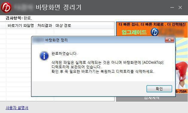 (*이 바탕화면 정리기 프로그램은 사진을 지우는 것은 아니고 프로그램 설치 파일 같은것을 한쪽 폴더로 모아주는 기능을 하고 있다고 해요.)
