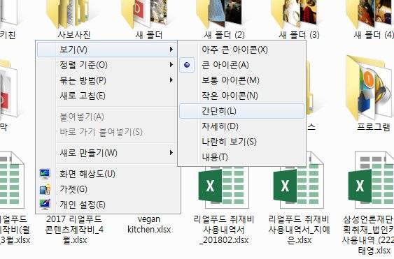 아이콘이 너무 크다면 마우스 오른쪽 클릭한 후 '보기 >> 간단히'로 설정해줍니다.