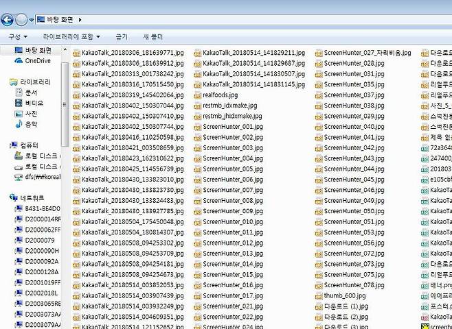 사실 저장한 시간 순서대로 돼 있어서 난잡한 바탕화면.
