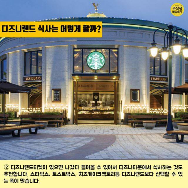 스타벅스, 토스트박스, 치즈케이크팩토리등 디즈니랜드보다 선택할 수 있는 폭이 많습니다.