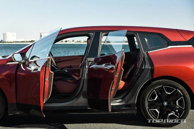실내에는 BMW 최초로 육각형 스티어링 휠이 탑재됐다. 디지털 계기판과 디스플레이가 하나로 연결된 와이드 디스플레이, 전자식 변속 레버 등이 적용됐다. 특히 iX는 최신 인포테인먼트 시스템인 iDrive 8을 지원한다. 5G, 무선 업데이트 등 다양한 기능이 제공된다.