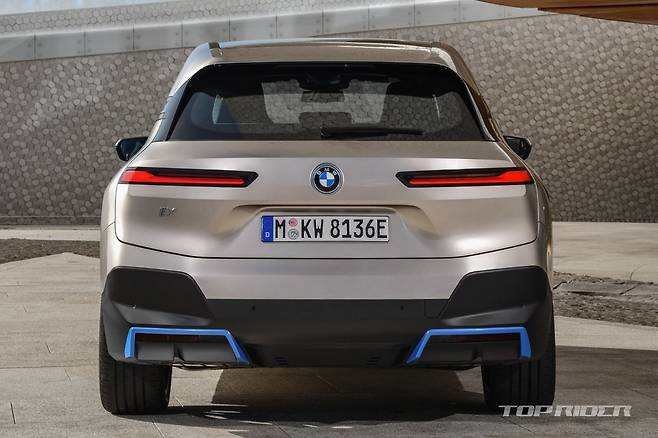 iX의 차체 크기는 BMW X5와 유사하다. 특히 전면부 대형 수직형 키드니 그릴에는 운전자 보조 시스템을 위한 센서, 카메라 및 레이더 기술 등이 통합됐다. 측면부는 프레임리스 도어와 팝업식 도어 핸들이 특징이다. 후면부 테일램프는 얇고 날렵하게 디자인됐다.