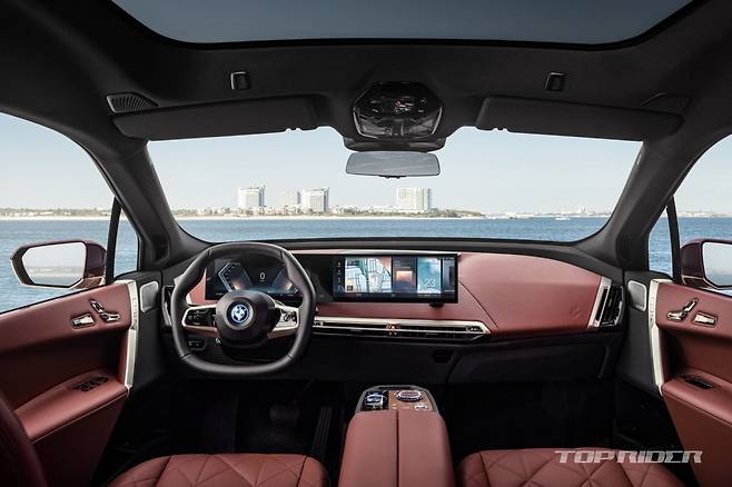 실내에는 BMW 최초로 육각형 스티어링 휠이 탑재됐다. 디지털 계기판과 디스플레이가 하나로 연결된 와이드 디스플레이, 전자식 변속 레버 등이 적용됐다. 특히 iX는 최신 인포테인먼트 시스템인 iDrive 8을 지원한다. 5G, 무선 업데이트 등 다양한 기능이 제공된다.