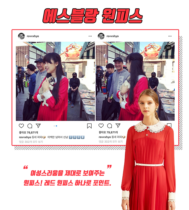 레드 원피스 하나로 스타일링을 완성!