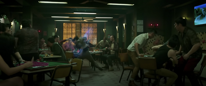 예고편에 따르면 <샹치>에선 샹치의 어린 시절도 만나볼 수 있을 예정이다. 샹치는 어린 시절부터 나무 기둥에 주먹을 휘두르며 쿵후를 익혔다. “세상에서 가장 위험한 자들도 건들 수 없을 정도”의 훈련을 거친 샹치는 주먹의 힘만으로 나무를 패이게 만든 파워를 지닌 인물. 10대 샹치는 여러 닌자들과 싸워도 지지 않는 실력을 지닌 능력자로 성장한다. 하지만 주변 사람들은 그의 대단한 실력을 아직 잘 모르는 모양. 예고편엔 샹치의 현란한 액션을 본 동료 케이티(아콰피나)가 그를 향해 “정체가 뭐냐” 물어보는 장면이 등장하기도 했다.