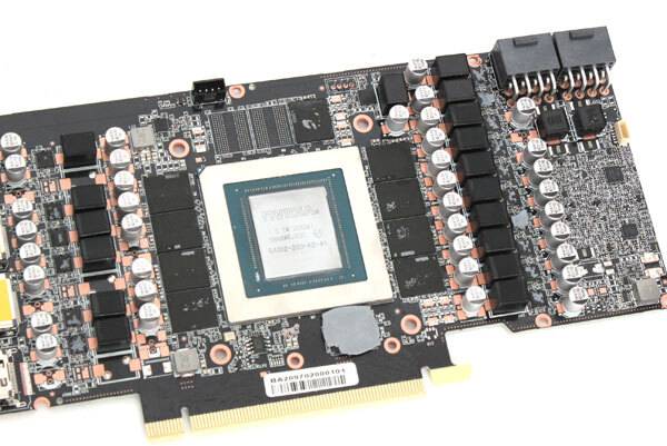 백플레이트는 단순히 PCB 보호를 위한 기능 외에 추가적인 방열판 역할을 위해 써멀패드를 메모리 칩 실장 위치에 덧대었다. 쿨러는 GPU와 메모리, 전원부 DrMOS와 쵸크의 발열을 모두 담당하다록 설계된 모습을 확인할 수 있다.