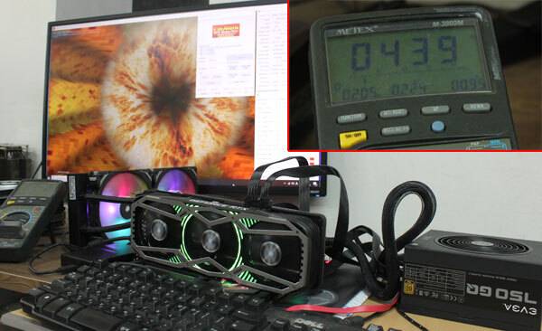 엔비디아는 지포스 RTX 3080의 파워서플라이로 정격 750W 제품을 권장하고 있다. 하지만 이엠텍 지포스 RTX 3080 블랙 에디션 OC와 같은 오버클럭 제품 사용자는 살짝 불안할 수 있다. 이를 검증하기 위해 80Plus 골드 인증을 받은 750W 출력의 EVGA 750GQ 파워서플라이를 이용해 이엠텍 지포스 RTX 3080 블랙 에디션 OC를 장착한 코어 i9-10900K(오버클럭 미적용) 시스템의 소비전력을 측정했다.