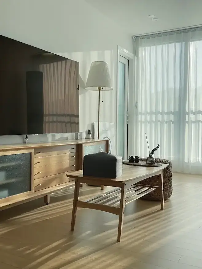 남동향집으로 이른 아침부터 정오까지 햇빛이 길게 들어옵니다. 원목가구에 포근함을 더해주어 자연스레 편안한 분위기가 연출됩니다.