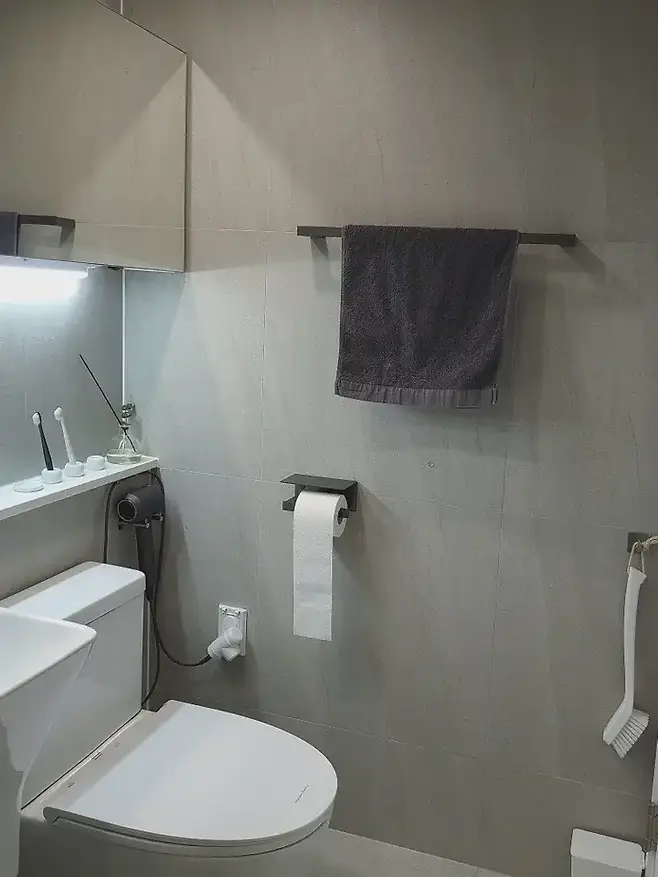 그리고 화장실 바닥에도 열선 공사를 해서 겨울에도 화장실을 따듯하게 유지할 수 있게 되었고 물기도 금방 마르게 되어 곰팡이 방지에 큰 도움이 되었습니다.