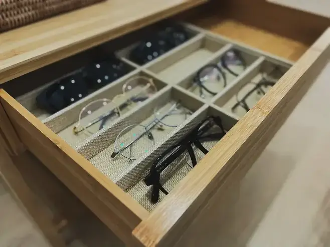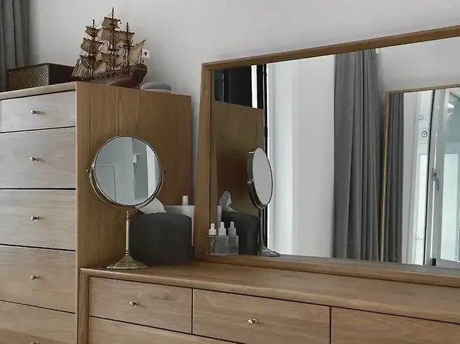 붙박이장으로 부족한 수납은 서랍장 행거를 사용하여 자주 입는 옷들을 쉽게 입고 벗을 수 있도록 했으며 각종 악세사리들도 서랍장에 넣어서 공간을 활용했습니다.