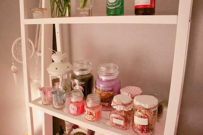 두 번째 선반에는 캔들로 채웠어요.