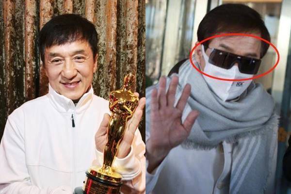 이날 성룡은 흰색 재킷에 회색 머플러를 두르고 커다란 선글라스를 착용한 채 나타났다.