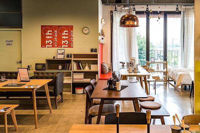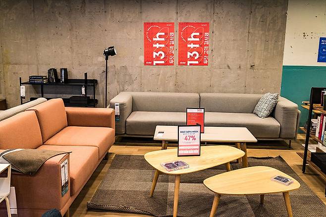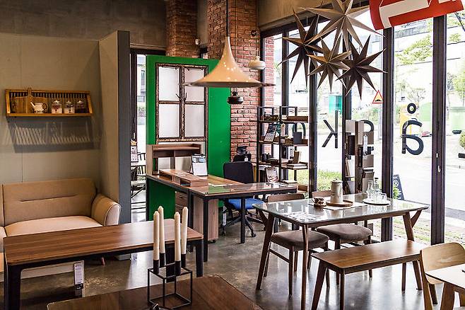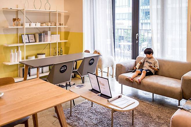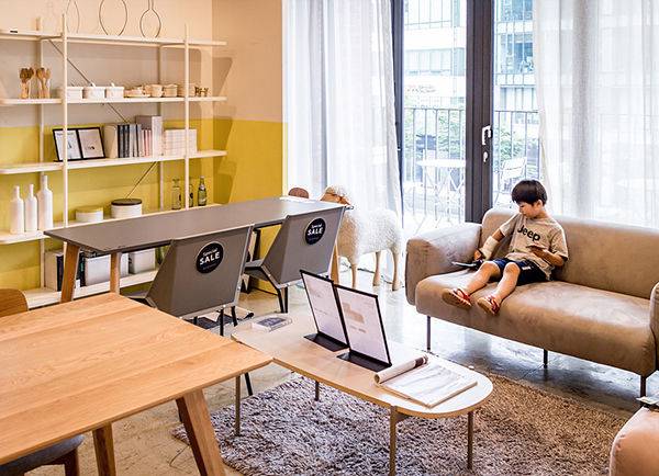 따라다니던 아들은 일찌감치 2층 소파가 있는 디스플레이룸에 제 스마트폰을 받아들고 자리를 잡았습니다. 저도 저기 옆에 앉아 있고 싶은 마음이 슬슬 듭니다. 애초에 계획에 없던 다양한 가구들을 모두 둘러보고 난 후에야 지친 표정의 저를 위해서 2층에 있는 커피숍으로 이동했습니다.