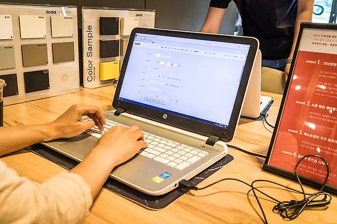 구입 방법이 굉장히 독특합니다. 쇼룸의 PC로 온라인몰에 접속해서 실제 주문할 제품을 골라 장바구니에 담은 다음 쇼룸 직원을 불러서 주문 확정을 한 다음 계산대에 가서 결제를 완료합니다. 온라인에서 바로 직접 카드 결제할 수도 있는 것 같습니다.