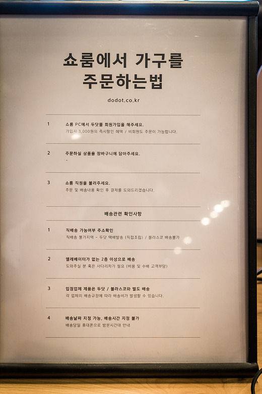 주말 식탁과 책장 구입을 위해 두닷 판교 쇼품을 둘러보고 왔습니다. 쇼룸 자체는 가구를 보고 즐기는 공간에 충실했습니다. 역시 가구나 인테리어 소품들은 직접 보는 즐거움도 있는 것 같습니다. 온라인몰 중심의 가구 판매 전략도 꽤 신선하게 다가왔는데 기존 가구 브랜드도 한 번쯤은 눈여겨 봐야 할 전략으로 생각합니다.