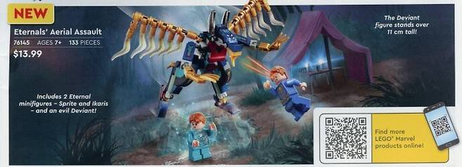 위의 레고 캐릭터들은 이전에 소개한 이터널스 캐릭터들의 모습으로 이번 영화에서 어떤 외형으로 등장하게 될지 보여주고 있다.