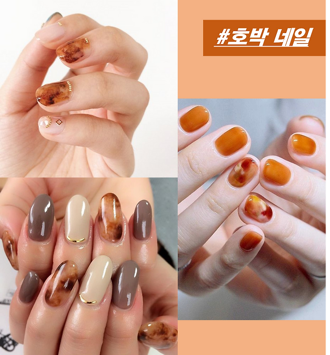 영롱하게 보석처럼 반짝이는 ‘호박 네일’이에요. :)