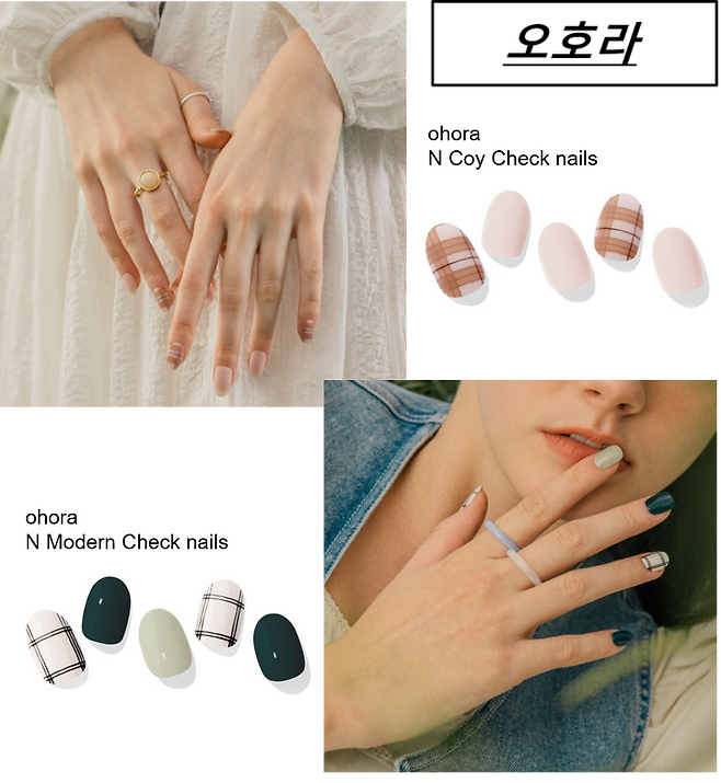 트위드, 체크 등 패브릭 소재 느낌의 네일 아트를 선보였어요.