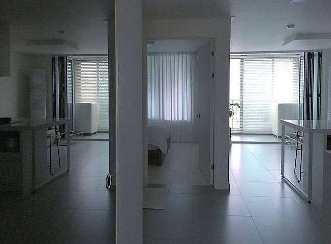 3개의 방 공간은 크림톤 강마루이고, 각 방에선 그 역할에만 충실하게 했어요. 이를테면 침실은 잠만 자는 공간, 드레스룸은 옷만 갈아입을 수 있는 공간처럼요.
