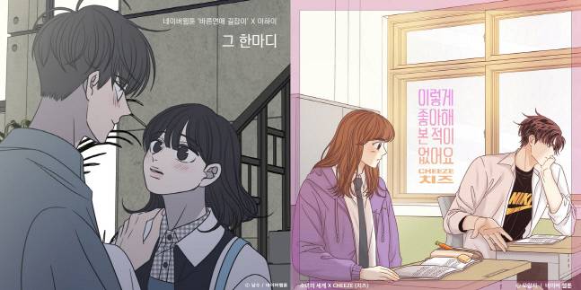 가수 이하이와 치즈(CHEEZE)가 각각 네이버 웹툰 ‘바른연애 길잡이’와 ‘소녀의 세계’와 컬래버레이션 음원을 14일 공개했다. 과거 드라마와 영화에서 감미로운 감성을 선사했던 이들이 이제는 웹툰에서 공감 가득한 사랑이야기를 전한다.
