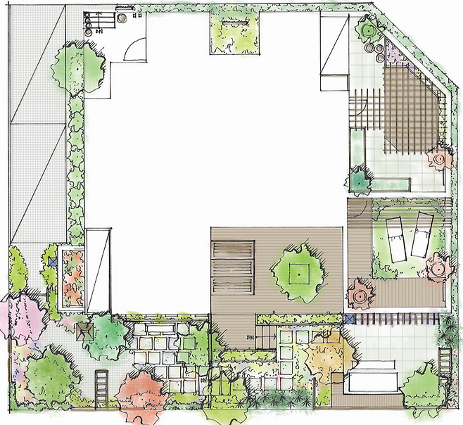 집을 중심으로 배치도를 펴 놓고 이야기를 해보자. 그 크기는 어느 정도로 해야 하는지, 얼마나 자주 이 공간을 사용할지에 따라서 생각이 달라진다. 먼저 어디에 배치하면 좋을지는 집의 실내 공간과 함께 고민해야 한다. 주방 출입문과 가까워야 하는지, 거실문과 가까워야 하는지 아니면 아이들과 방에서 보이는 공간이 어디여야 하는지 말이다. 동시에 햇볕과 바람 그리고 이웃들과의 관계에서 불편하거나 피해는 주지 않는지도 살펴야 한다. 급한 마음에 빠르게 결정을 내리려고 하지 말고 배치도를 펼쳐놓고 천천히 고민을 하다보면 답이 보인다. 이러한 재미있고 편리한 공간을 찾아보는 과정은 집과 자연과 함께 하는 주택정원 만들기에서 가장 중요한 부분이다.