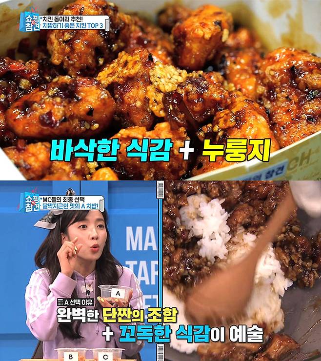 말 그대로 치킨과 밥을 함께 먹는 것!