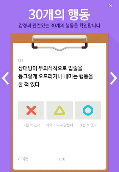 뒷쪽으로 기울이는지가 감정을 말해주죠.
