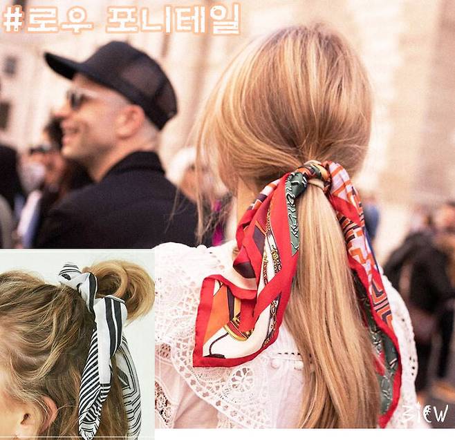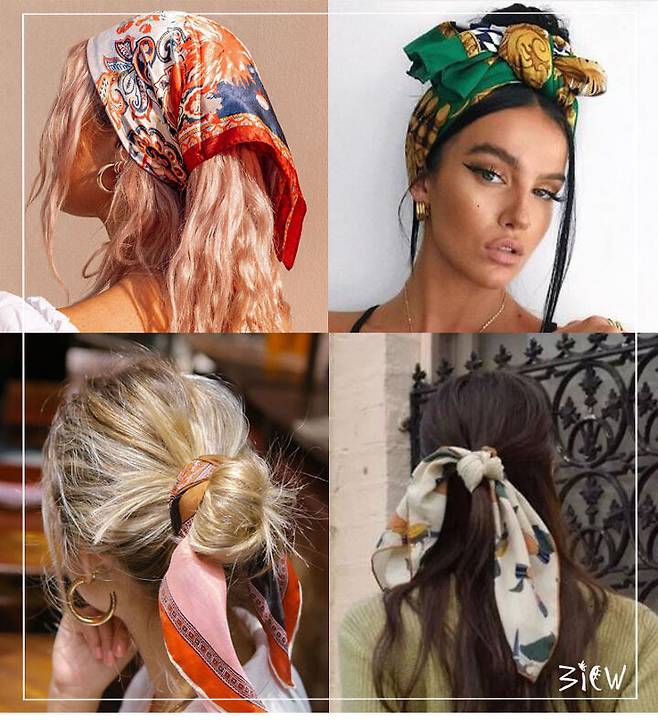 머리끈 대신 스카프를 활용하여