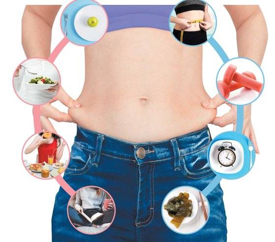 마른 비만에서 벗어나기 위해 섭취 열량을 줄이는 건 별 소용이 없다. 특히 여성은 뱃살을 빼기 위한 다이어트를 하겠다며 과자·초콜릿 같은 간식으로 끼니를 대신하는 경우가 적지 않은데 전혀 도움되지 않는다. 마른 비만을 벗어나는 식습관은 근육을 만들 수 있는 양질의 단백질과 함께 적정 탄수화물·지방을 포함한 균형 잡힌 식사를 규칙적으로 섭취하는 것이다. 대사 작용이 원활하려면 연료가 제때 공급돼야 한다. 특히 정상적인 근육량 확보를 위해 단백질 섭취가 중요하다. 전체 식사의 25~30%를 단백질로 채울 수 있도록 살코기·생선·콩류를 끼니 때마다 챙겨 먹는 것이 좋다.