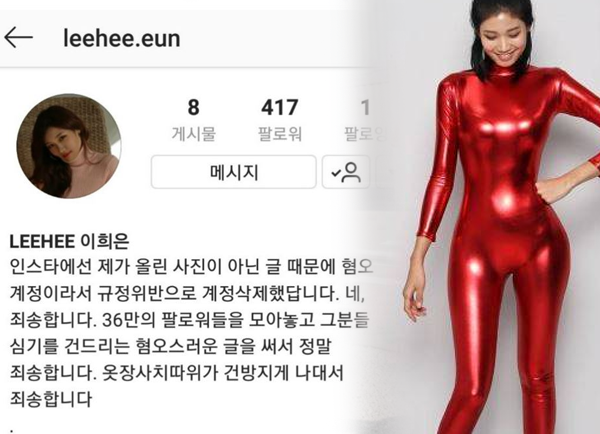이희은 씨는 "인스타와 페이스북의 규정을 아무리 찾아보고 검토해봐도 그런 건 없던데. 도대체 정확히 뭐가 규정을 어긴 거란 말이죠?"라고 전했습니다.