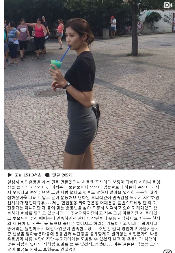 '그냥 마르기만 한 몸이었고 부모님이 주신 빼빼몸에 만족하면서 살다가 작년부터 운동 시작했어요'