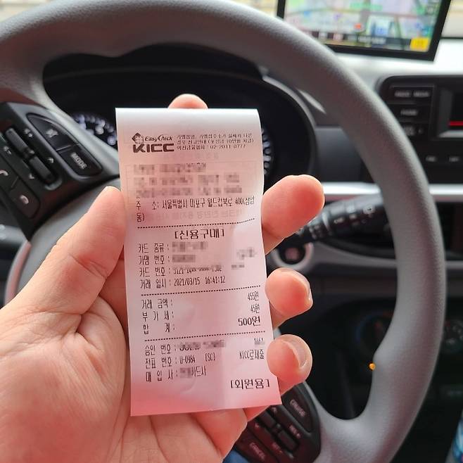 아마도 건물이 서울시와 연관된 곳이라서 이런 공간이 있는 것으로 보인다. 또, 경차 혜택은 나갈 때에도 이어졌다. 주차비를 절반으로 할인받았다. 불과 1시간 남짓 주차한 비용은 500원. 여러모로 택시보다 편하고 빠르고 저렴했다.