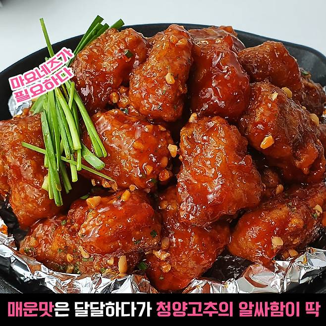 매운맛은 첫 입에는 음 별로 안 매운데? 했다가 3초 후에 청양고추의 알싸함이 훅 치고 들어오네요ㅋㅋ개운한 매운맛이라 좋아요ㅋㅋ 닭강정 양념도 케첩이 너무 많이 들어가면 과하게 시큼하고 텁텁해지는 경우가 있는데 이건 매운맛과 새콤달콤한 맛의 비율이 딱 적당했어요.