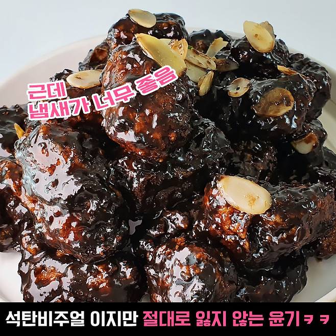 와우~역시 사람이든 음식이든 겉모습만 보고 판단하면 안되나 봐요. 짜장 맛일 거라고 생각하고 먹었는데 닭강정 순한 맛의 100배 순하고 100배 부드러운 버전?이라고 해야 하나요...? 오징어 먹물이 굉장히 담백하고 부드러운데 양념의 주성분이 오징어 먹물인가 봐요.